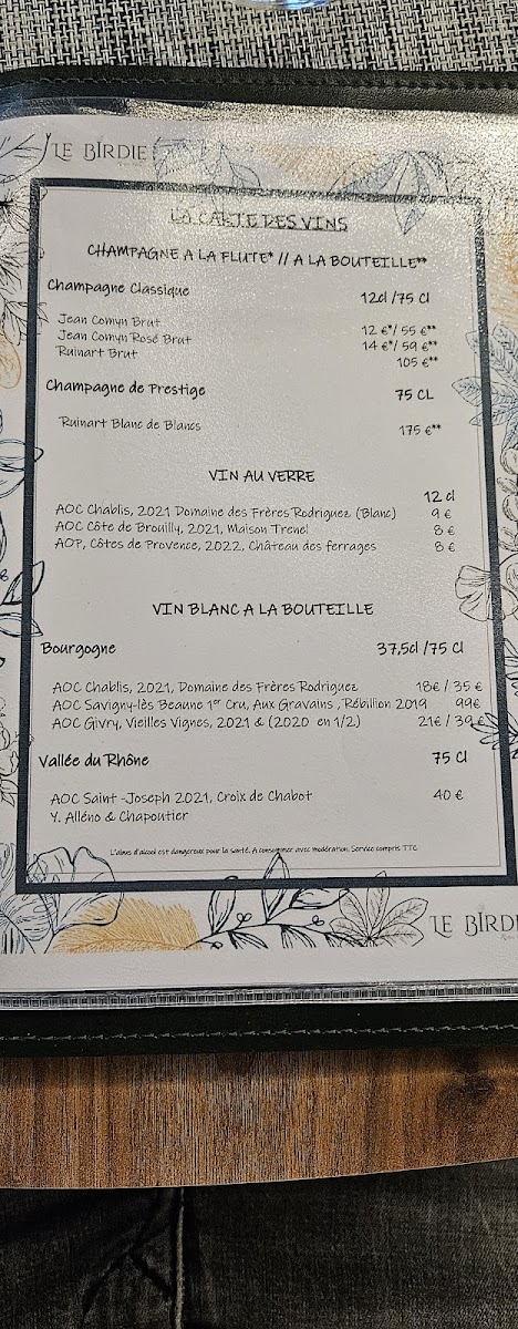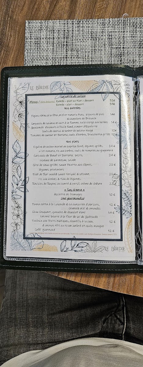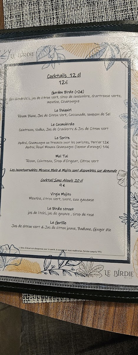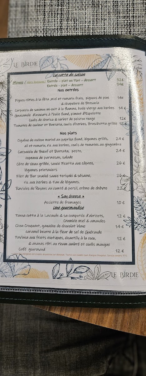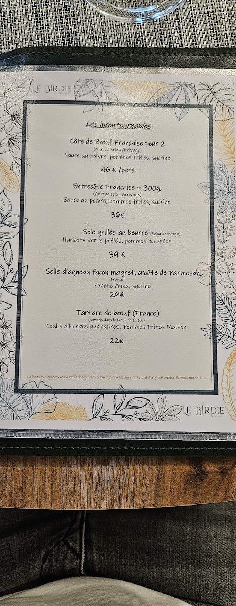 Le Birdie Restau Golf Menu