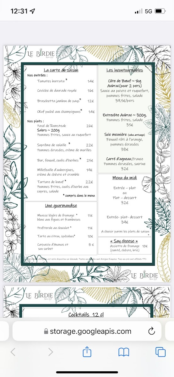 Le Birdie Restau Golf menu gallery